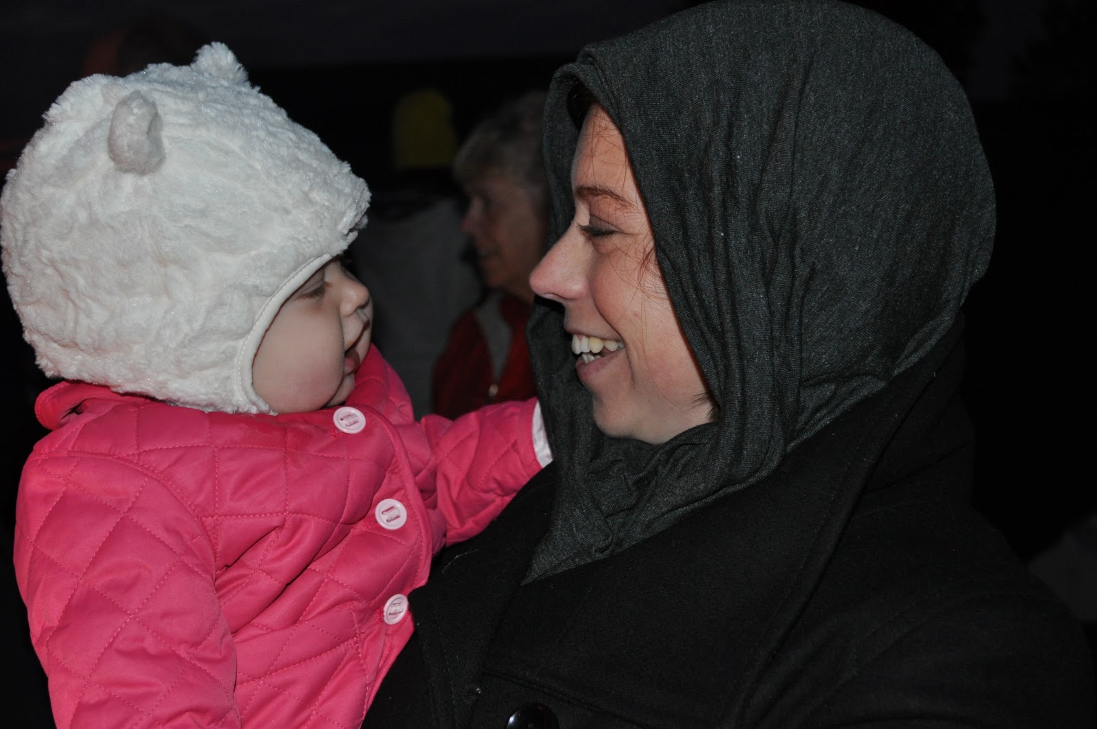 On Friday your turned nine months old. I took the day off since your nine month well check was scheduled for the day. More about those stats later. After your appointment we did some mother/daughter shopping and you even managed to pass out while in the shopping cart! Later that night we went up to your grandma and grandpa's house for a bonfire party. You love watching the fire.