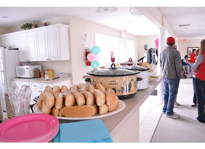 We had the party at a local community clubhouse which really worked out as far as space was concerned.  Our tiny house just wouldn't have held that many people for a first birthday party.  The downside is I had to make everything and then transport it and set up the day before whereas having it at our house I could have set up a week in advance and saved the cooking/baking for later.